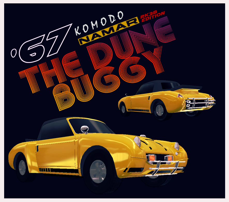 Designers added a nudge bar up front for protection out on the dunes. They also added a sports package. Consisting of black racing stripes on the front, hood and sides of the buggy. To finish off the design the team decided to paint up the new design in a bright sunburst yellow.