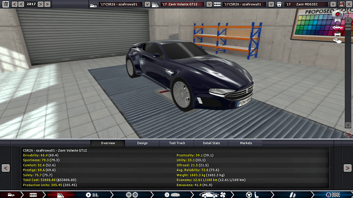 This is a very elegantly designed car, highly reminiscent of the Aston Martin One-77, particularly when finished in deep midnight blue. Itās constructed entirely out of carbon fiber, which keeps the weight down to just 1.6 metric tons. The only things that break up the otherwise smooth body profile are the hood scoop and biplane active rear wing. Unsurprisingly, I began to fall in love with this car, especially after I popped open the hood and found a 6.3-liter normally-aspirated V12 developing an astounding 832 bhp on super unleaded and with a 9000-rpm redline. However, like the Schack, the Volanteās engine also has a cam profile which is much milder than its VVL profile, resulting in a flat power delivery until 4000 rpm, at which point the car really starts to gather speed. Reliability is great, but it could have been higher if the conrods were made of titanium instead of forged steel. In all honesty, though, this engine feels like it could last forever, and sounds very good as well, almost enough to make me overlook the somewhat high fuel consumption caused by its 13.5:1 AFR.
