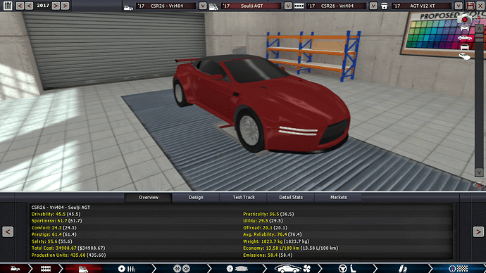 The 6-liter 48-valve normally aspirated V12 under the Schackās hood promised much, yet turned out to be a disappointment in practice for a couple reasons. The combination of a very mild cam profile and extremely aggressive VVL profile meant that the power delivery didnāt really excite me until around 6000 rpm ā there simply wasnāt enough low-end torque. Also, the RPM limit of 10000 was actually too high for the engine internals, stout as they are, and so the reliability figure of 70.3 was just barely enough for it not to be disqualified. At least it developed 778 horsepower at 9200 rpm, but I was not sure if that alone would prevent the car from making the final cut.