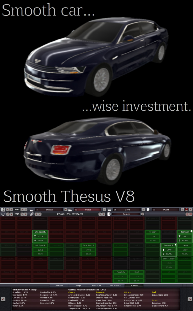 donāt worry about timelyness, out of 8 cars submitted most are done, with vriās car having problem, and i feel like i want to give nerdās car a special review which might take a little bit more time, and bobloblawās car i havenāt received. all in all, i actually might be able to finish early and post the results on friday if not on the same day, that is if iām not screwed by college again. if so, i might be releasing it on saturday