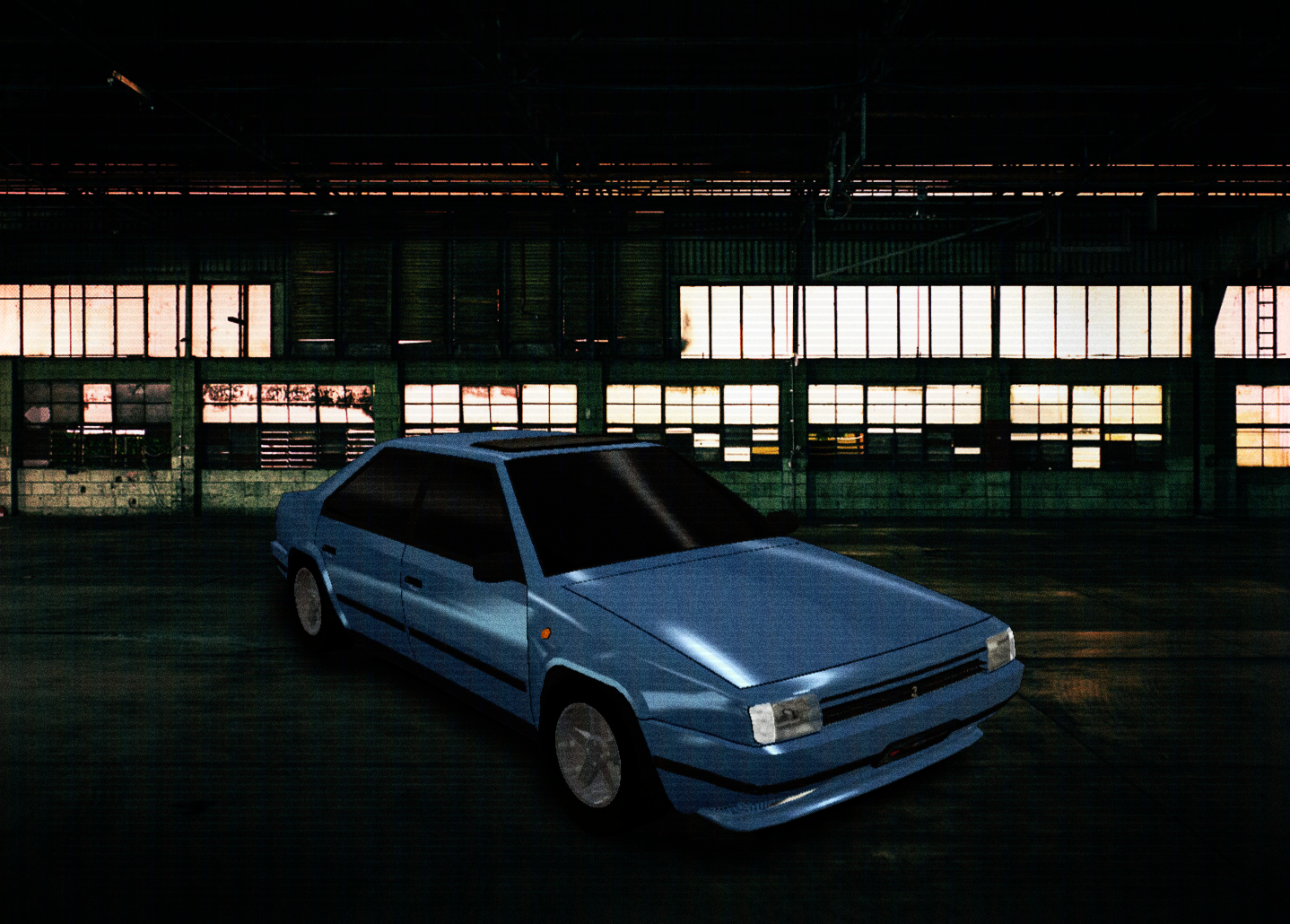 HmmmâŚlet get a look at this thing. As I got it out of the container it was unmistakably a german saloon, some Scandinavian influence too. The whole result was very clean and efficient but also kind of boring. I suppose I ought to give it a test drive. Stepping inside itâs a similar story fairly plain. But smart choices, room for probably around five people. Starting it up itâs turbocharged and inline 6 all seems very german. Flip on the headlights, find the exit, shift it into first and slowly slip out into the rain and empty dockyard.