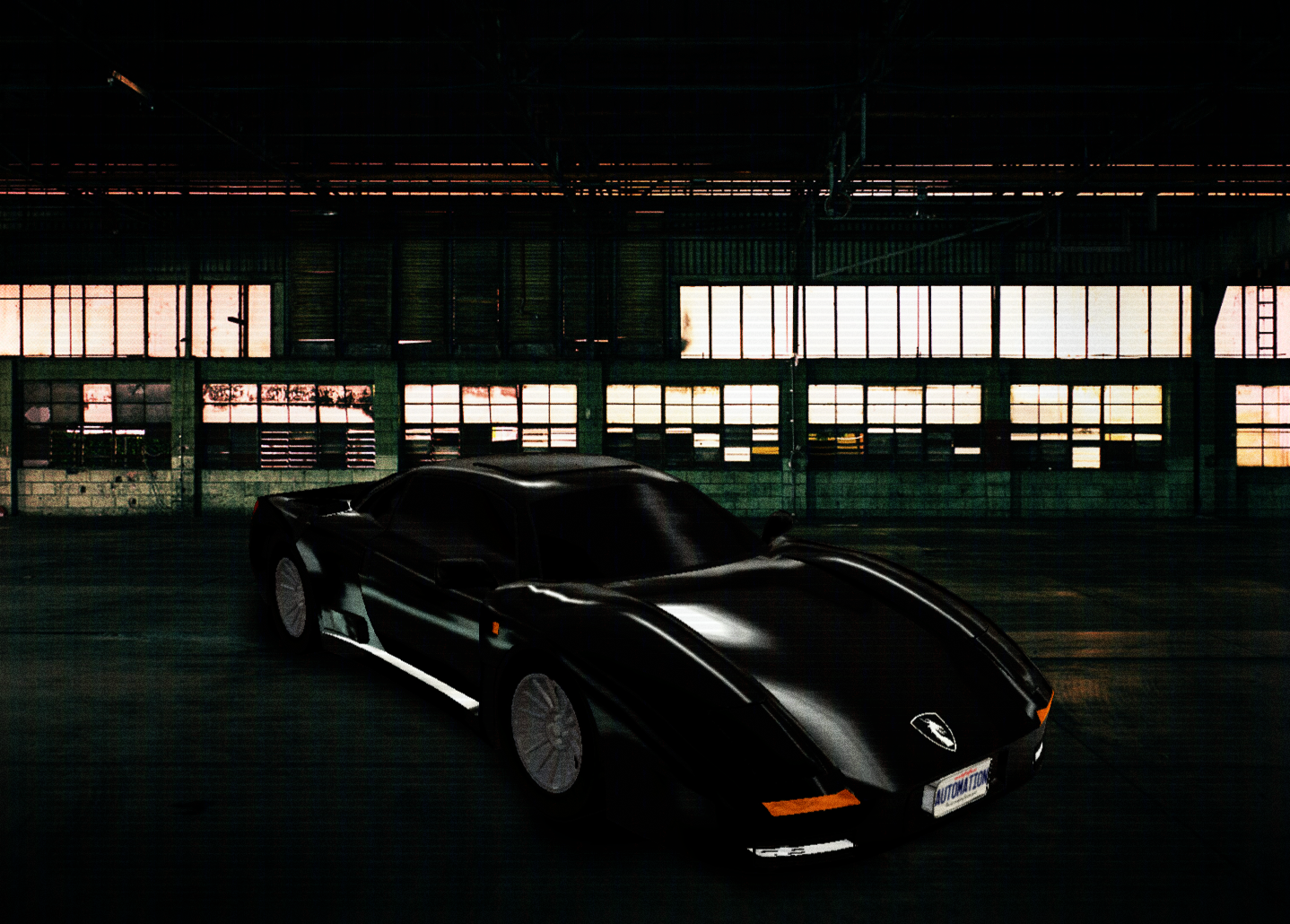 The container revealed the Phoenix rising from shadows as I rolled it out. The front doesnât look quite the same I donât see the two-tone red on the lower grill but rest looks the part. A sleek black coupe with red stripes along the side flared arches and Turbo badging. The 2.8L Turbocharged V6 sat under the hood. Inside it was futuristic upmarket stuff. Leather seats, digital display, ABS, power steering and airbags. Although I noticed there wasnât a stick shift but instead a 4-speed slushbox.