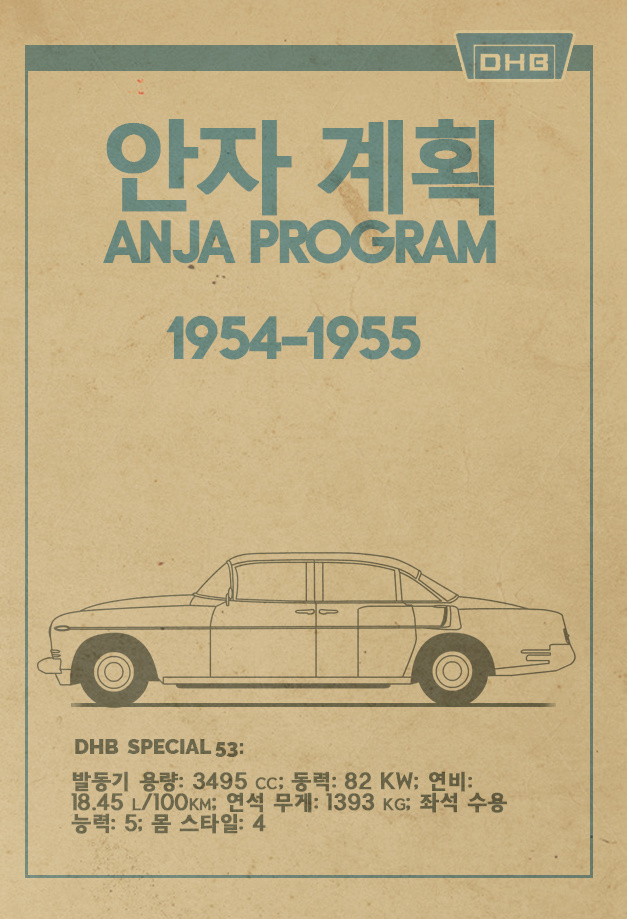 A rare image of the DHB Special 53 in a 1954-1955 Anja Program brochure. (안자 계획; Anja Gyehoeg; short for Anikatian Vehicle Program). It was state owned company that handled the distribution and ‘sales’ of vehicles.