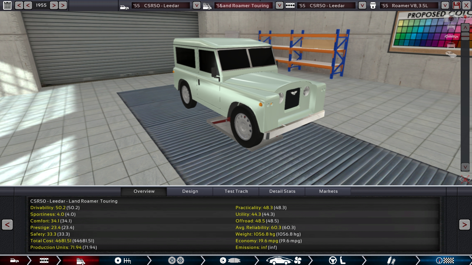 The Land Roamer Touring is another off-roader, but this one is definitely a little more interesting. While the Papua was a hardcore off-roader, the Roamer is designed to straddle the line between off-road capability and on-road driving manners. It’s built on a unibody chassis with Macpherson struts up front and a coil-sprung live axle in the rear, along with standard road tires. It’s still got a 4x4 drivetrain with manual lockers, as well as a skidtray. The engine is a 3.5L OHV crossplane V8, producing a modest 100hp but with 177 lb-ft of torque at just 1500RPM. Because this car is so much lighter than the Papua, it can do 0-60 in a respectable 11.8 seconds. Braking and cornering is also far superior. Despite that, the Land Roamer manages to be nearly as good off-road as the Papua, and it would probably be better with dedicated off-road tires. And best of all, it’s quite affordable as well. I think the Land Roamer would fit the bill quite well.