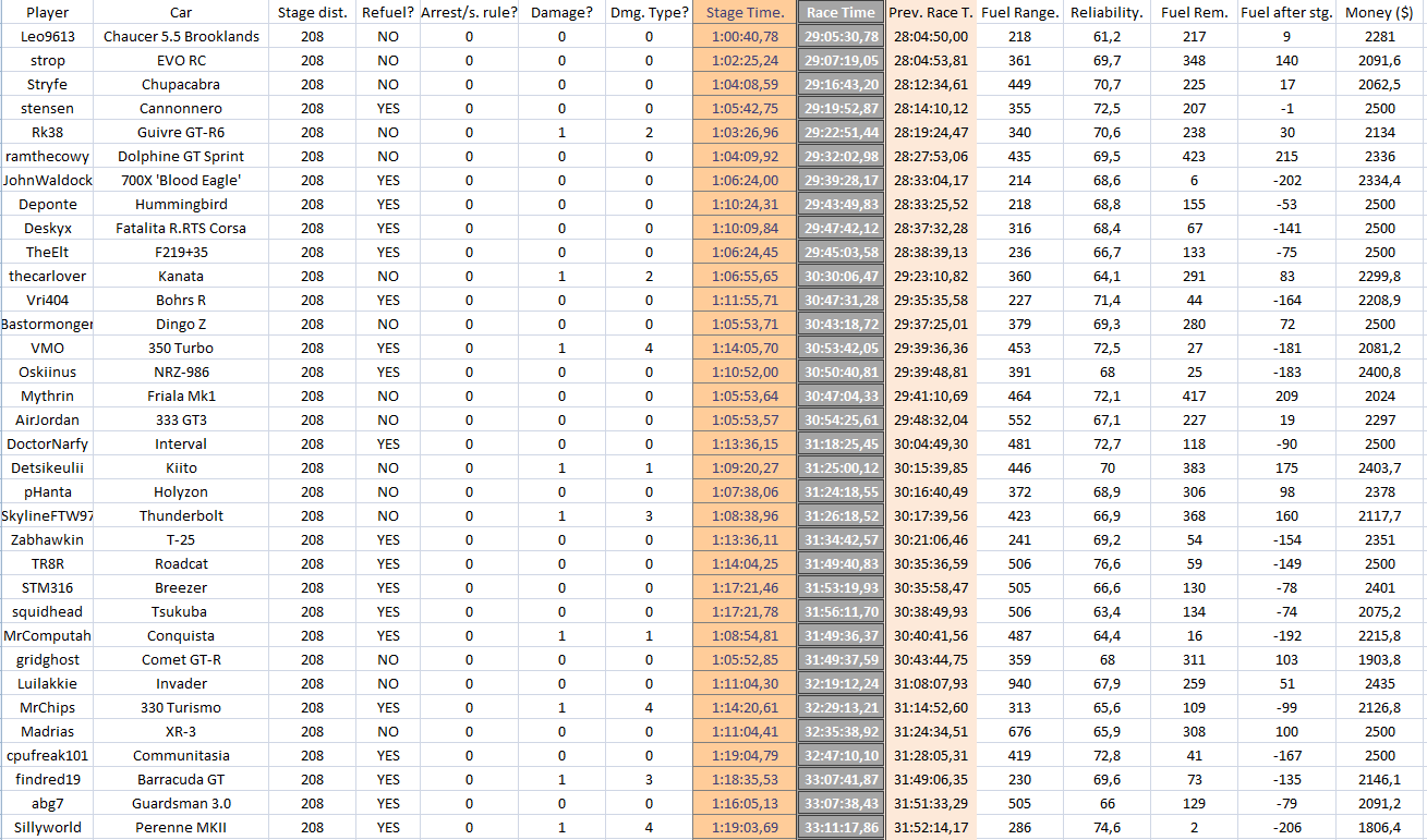 5th place - @Rk38 (Consistent and fast, held its place for most of the race. Congratulations!)