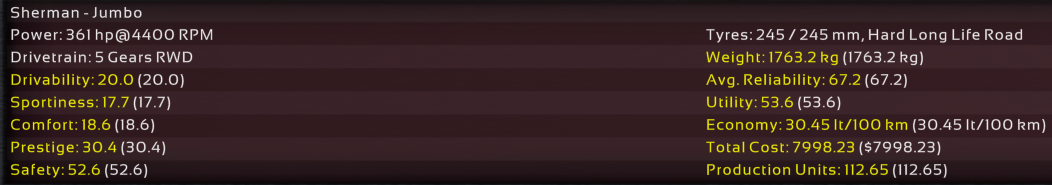 . However, the tech just isn’t there for a super durable and powerful OHC motor in '78. You have to remember that most of these cars were being serviced by in-house mechanics. They could build a pushrod motor. I think OHC is just too much for the police mechanics of the 70s IRL, but this is a competition within a tycoon game, so I’m interested to see how those motors fare. Go look at my pursuit variant I posted earlier and you’ll see that 500 HP comes through OHC not OHV.