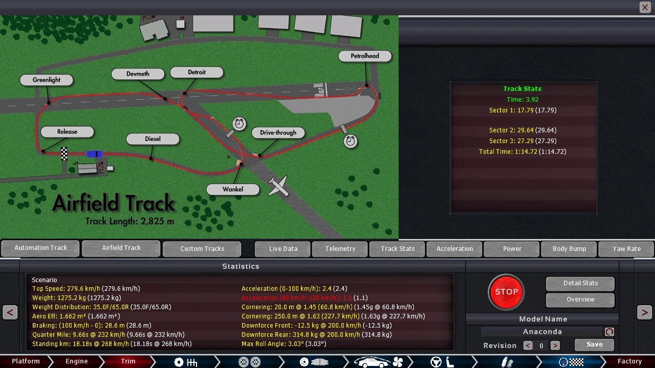 The Anaconda is a sports car that’s not about maximum acceleration (though it accelerates very quickly) or top speed. It’s about handling and cornering speeds. And that fact is very noticeable when you drive it around a track.