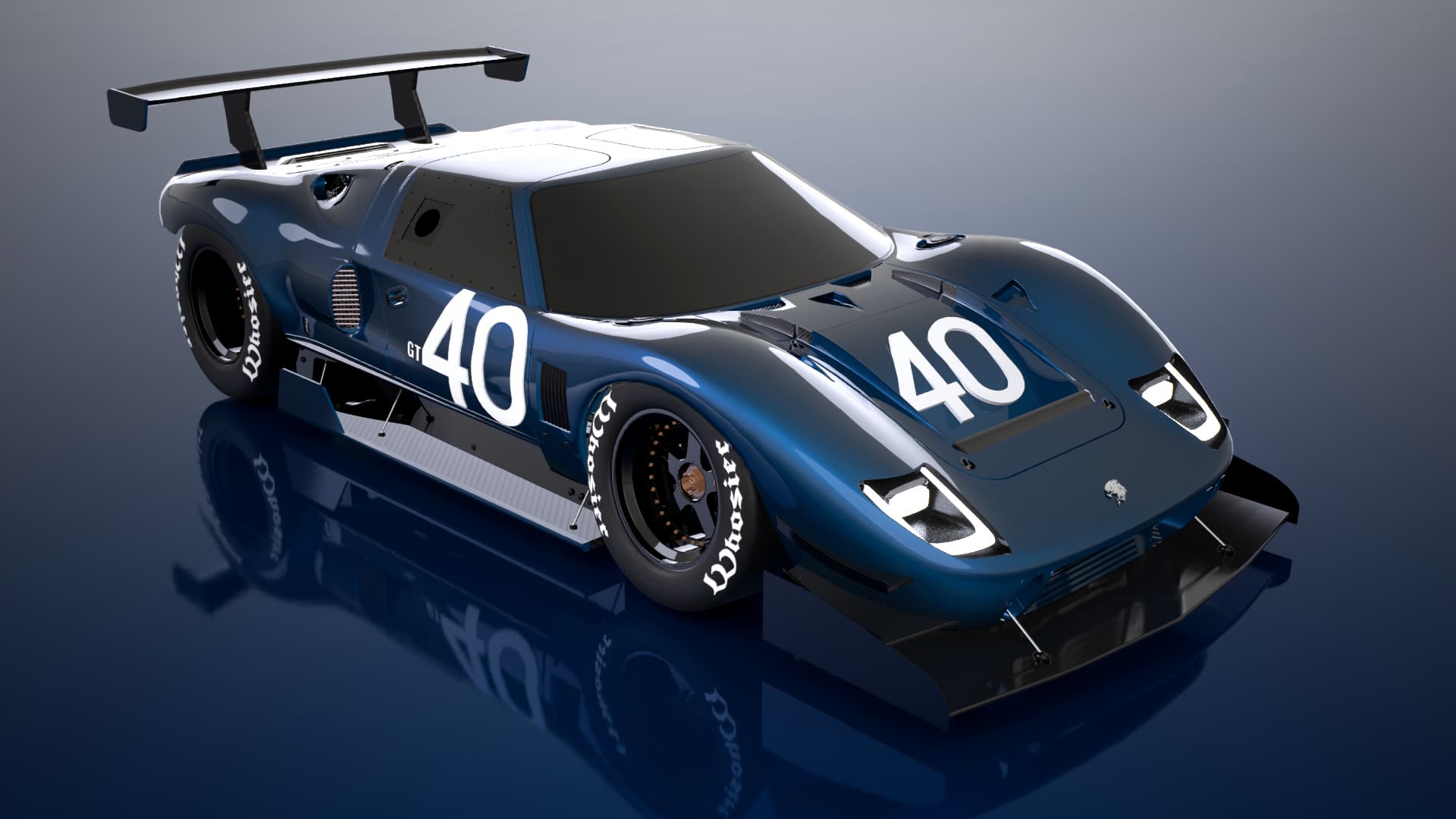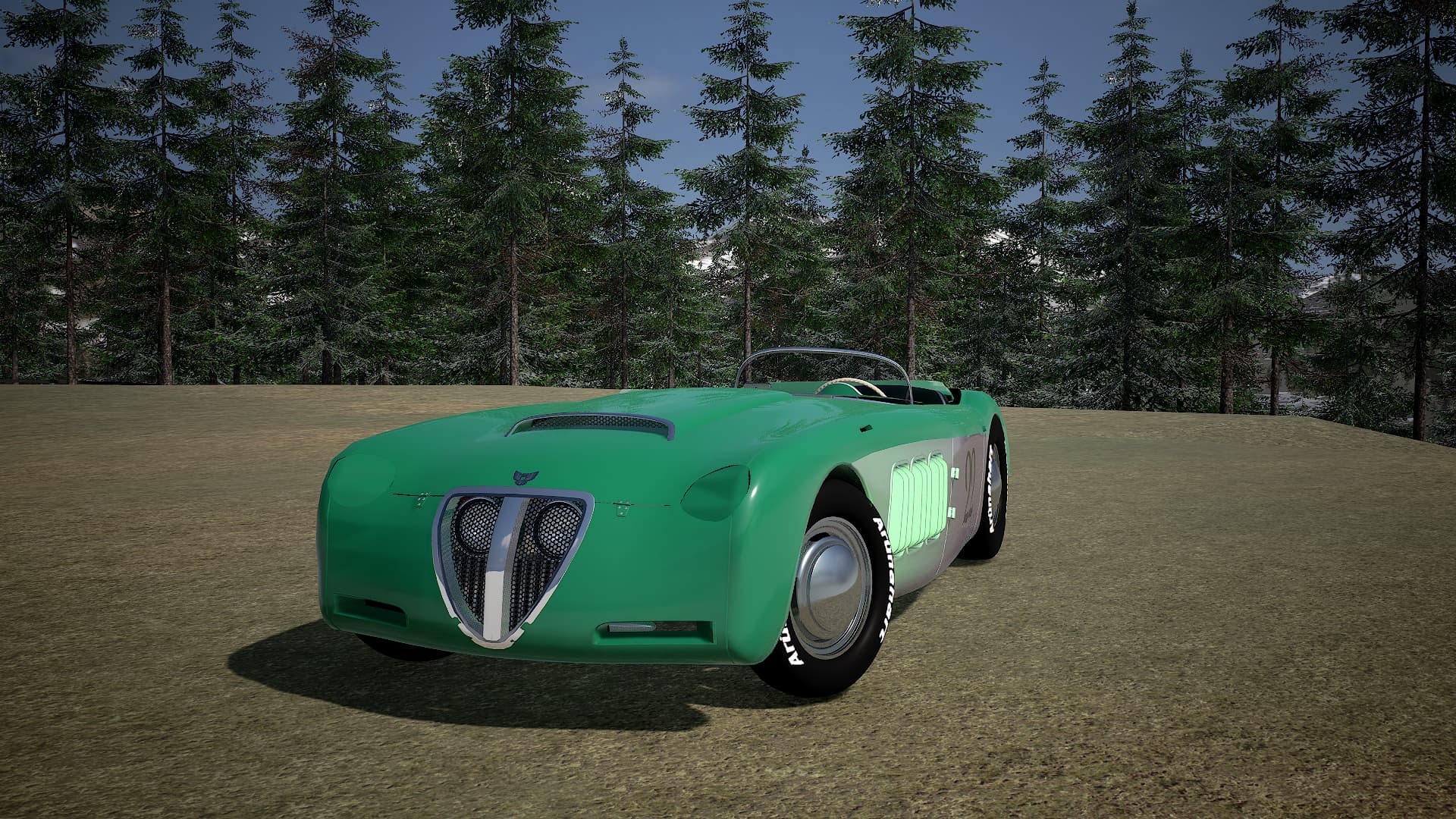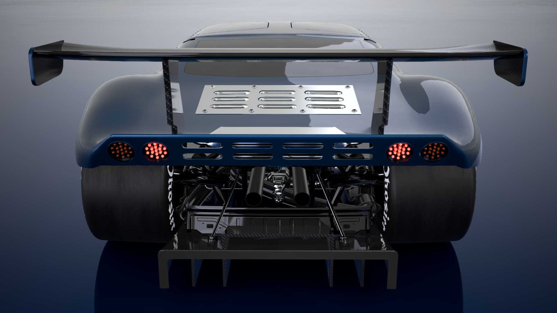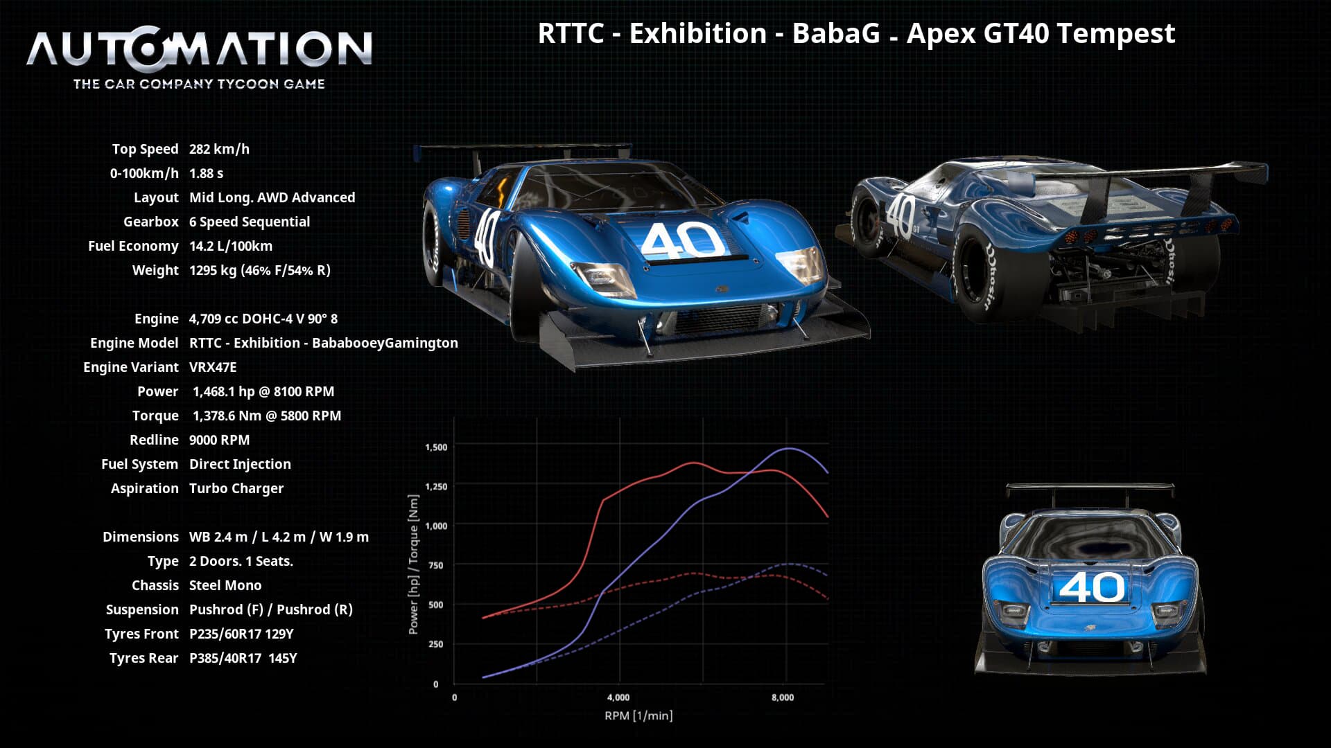 Here is my second entry, the Apex GT40 Tempest. The design is based around the MK1 GT40, and I tried to keep as much of the original V8 as possible. However, this is not a tribute car, it is in all ways a track weapon. The chassis, panels and wheels are all carbon, the 4.7l engine got a twin turbo upgrade and lighter parts and is tuned to over 1400hp. Also, to be competitive an AWD system, electric steering and advanced aero features were introduced. It absolutely demolished the Pike’s Peak record, with a time of 4:37.556 (after using the race calculator).