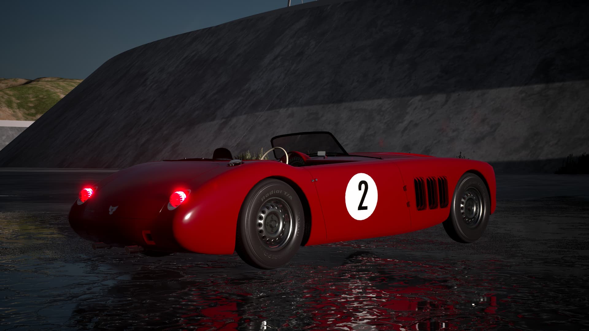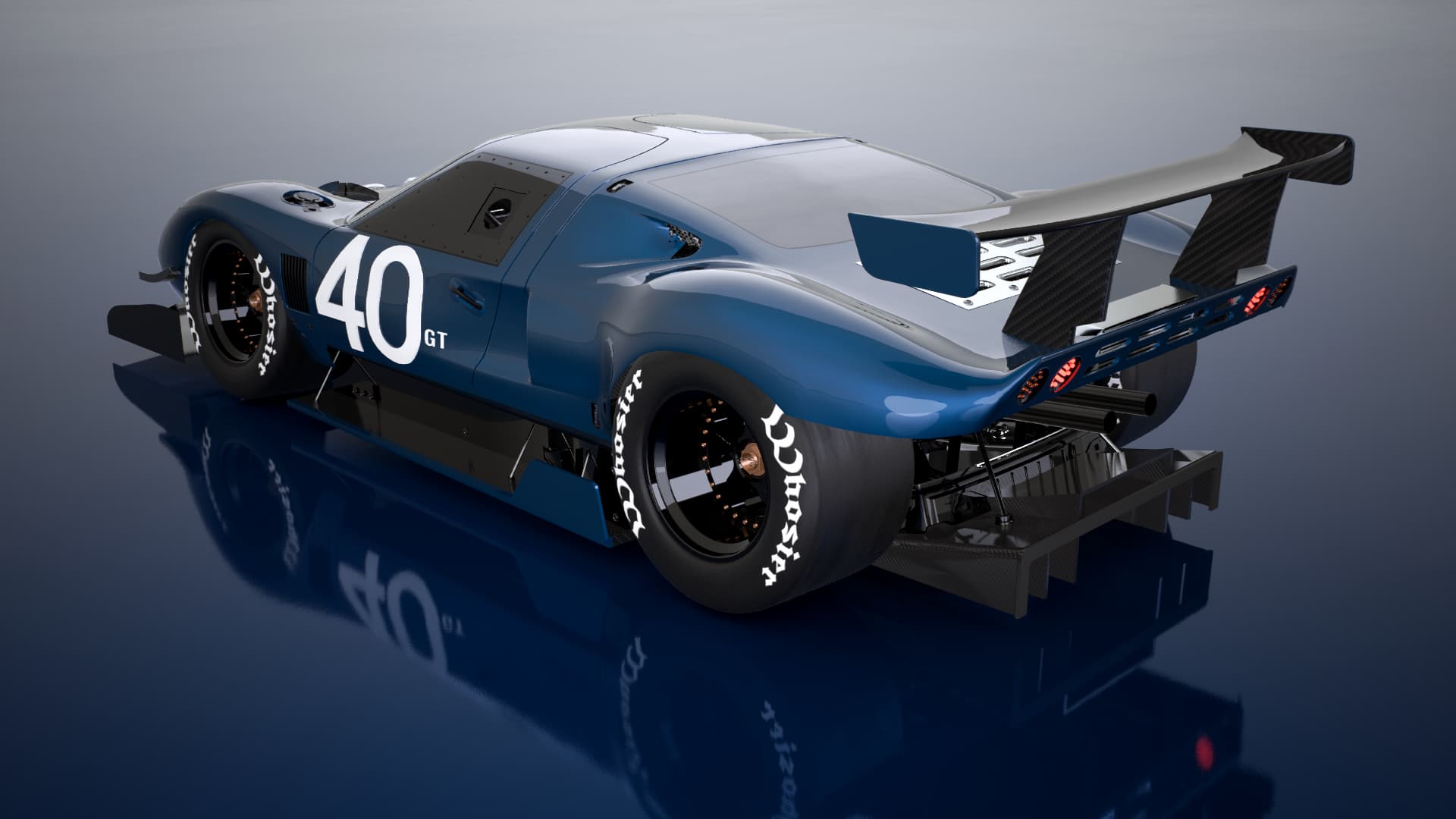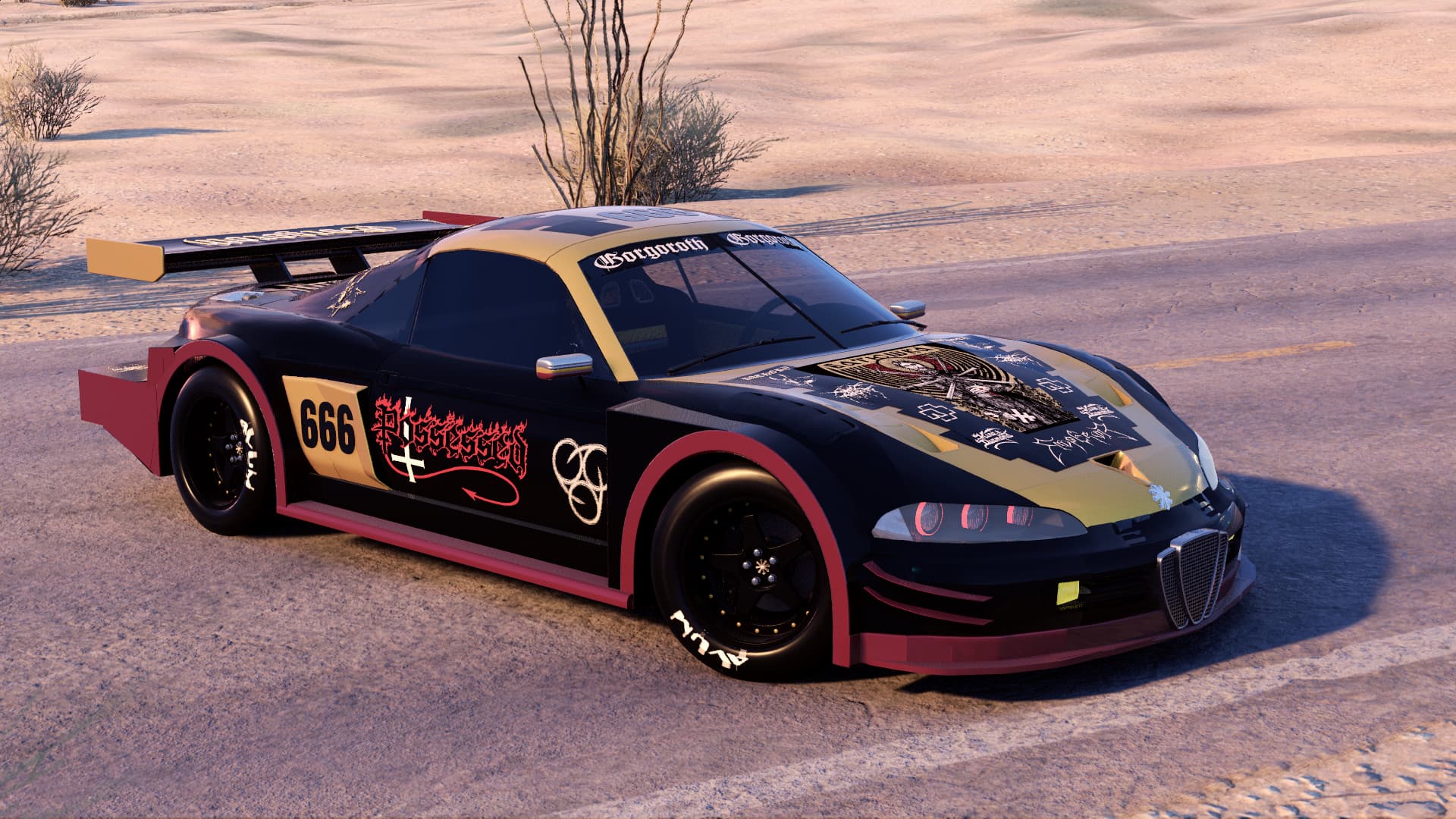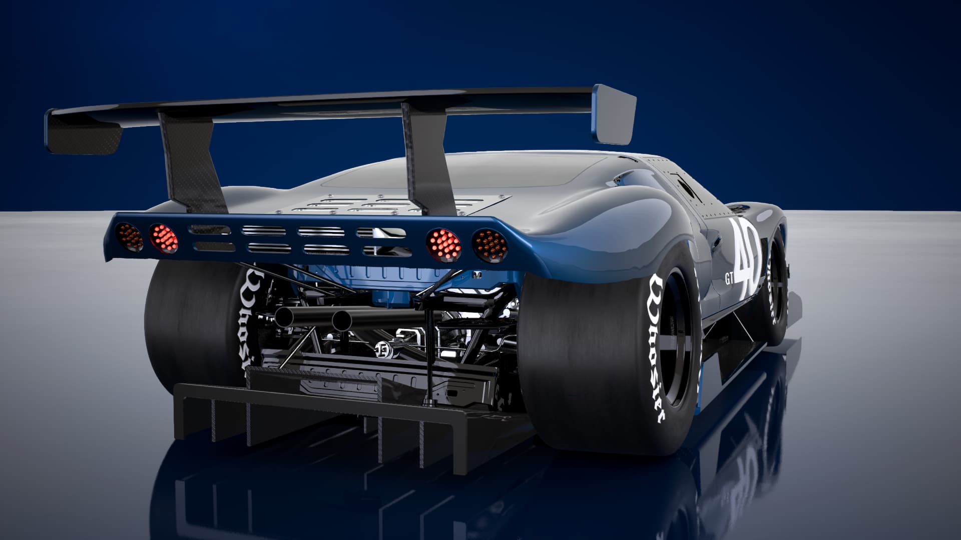 Here is my second entry, the Apex GT40 Tempest. The design is based around the MK1 GT40, and I tried to keep as much of the original V8 as possible. However, this is not a tribute car, it is in all ways a track weapon. The chassis, panels and wheels are all carbon, the 4.7l engine got a twin turbo upgrade and lighter parts and is tuned to over 1400hp. Also, to be competitive an AWD system, electric steering and advanced aero features were introduced. It absolutely demolished the Pike’s Peak record, with a time of 4:37.556 (after using the race calculator).