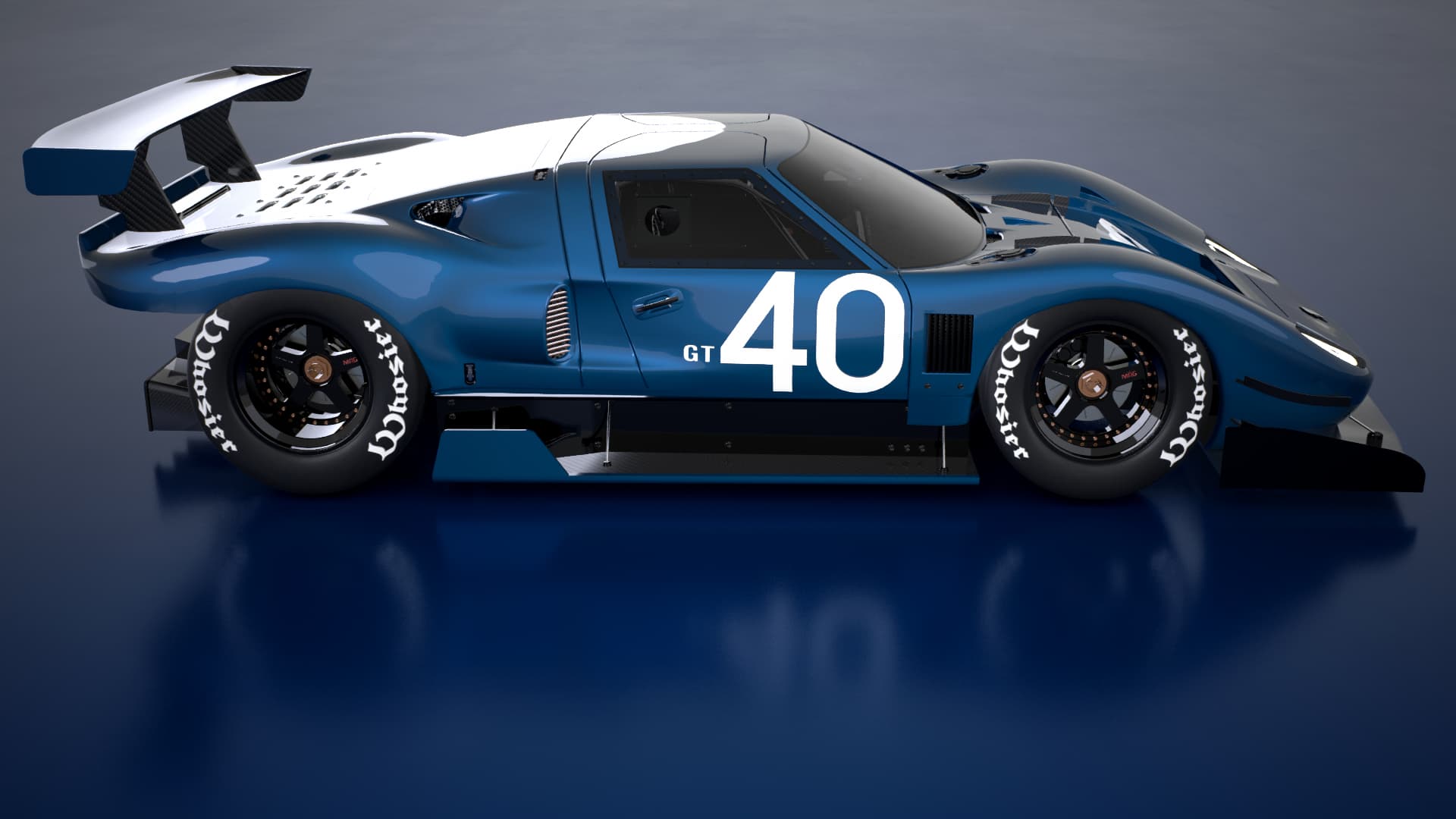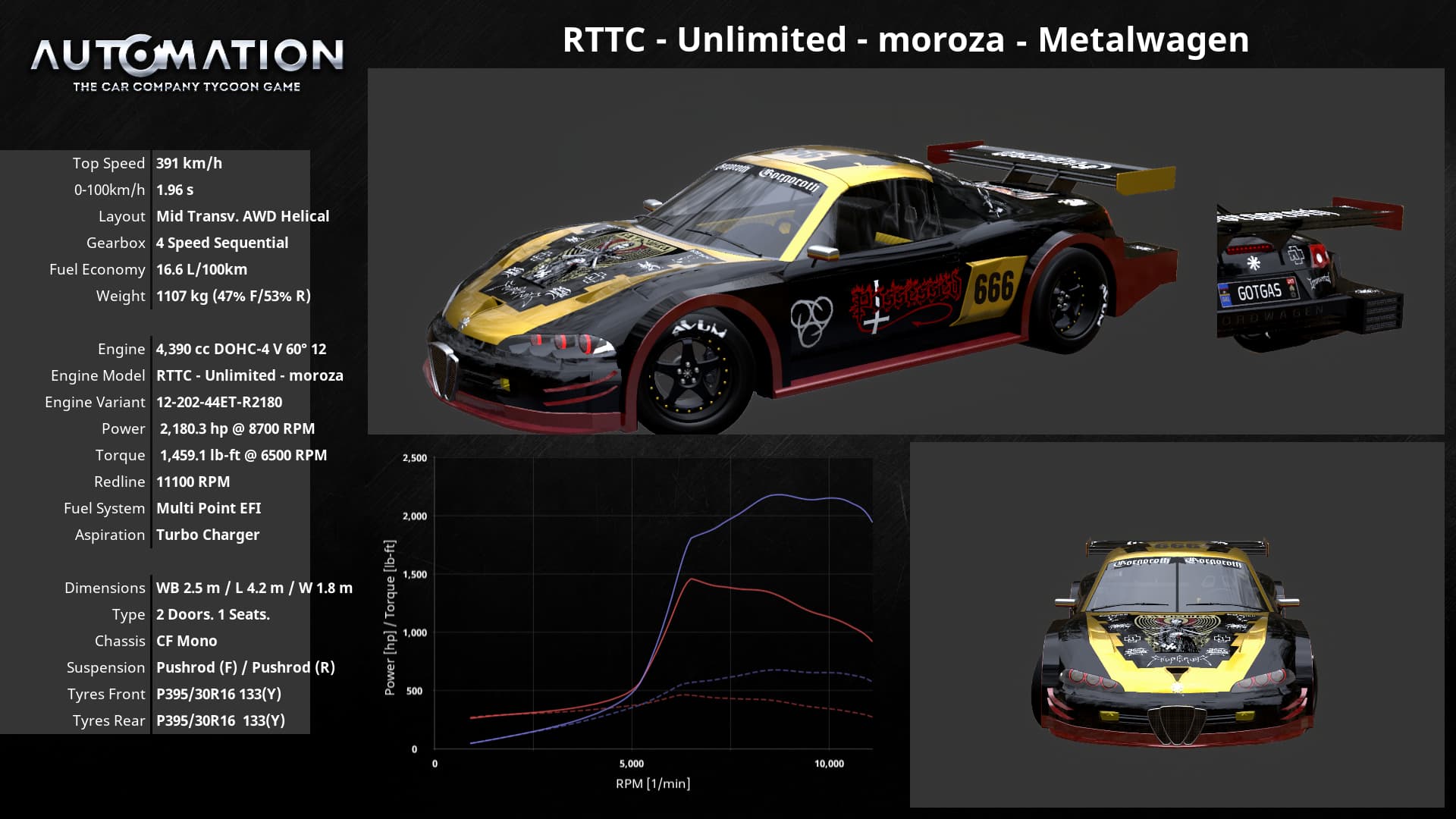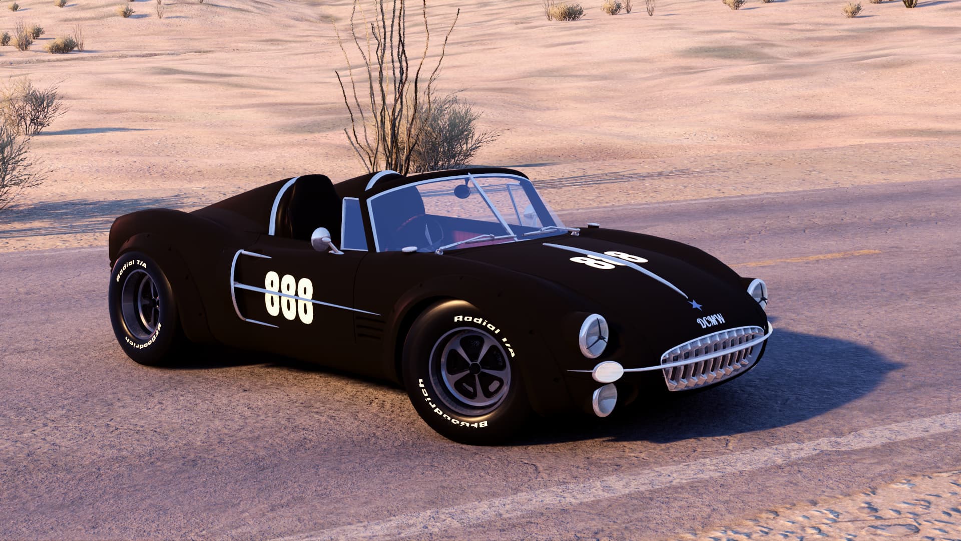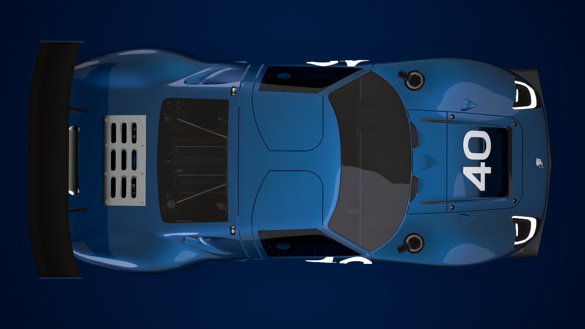 Here is my second entry, the Apex GT40 Tempest. The design is based around the MK1 GT40, and I tried to keep as much of the original V8 as possible. However, this is not a tribute car, it is in all ways a track weapon. The chassis, panels and wheels are all carbon, the 4.7l engine got a twin turbo upgrade and lighter parts and is tuned to over 1400hp. Also, to be competitive an AWD system, electric steering and advanced aero features were introduced. It absolutely demolished the Pike’s Peak record, with a time of 4:37.556 (after using the race calculator).