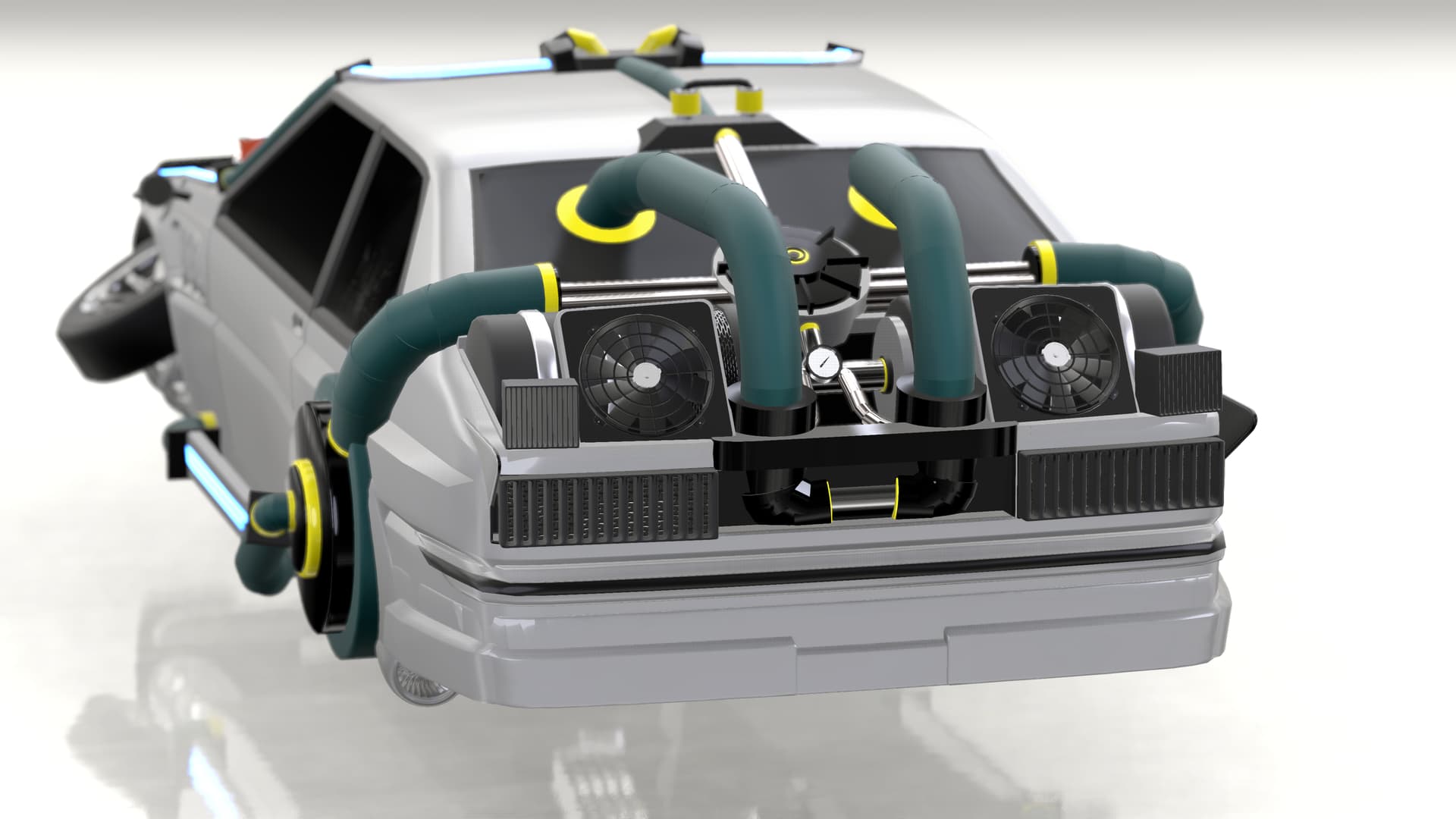 Fitted with very wonky time travel equipment, the car is prone to explode any time it does travel through time. The engine in the car is mostly stock, with parts from the rear quantum time tanks being hooked up for power - meaning the engine is very prone to overheating, thus the installation of 2 air intakes and 2 exposed intercoolers which keeps the engine mostly in one piece.