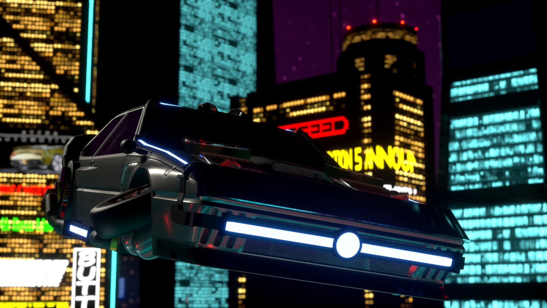 A highly modified WayVerner Belasco Coupe, discovered in some garage in the year 2053. The car is very much instable, and will most likely explode the next time trying to time travel. Still flies though!