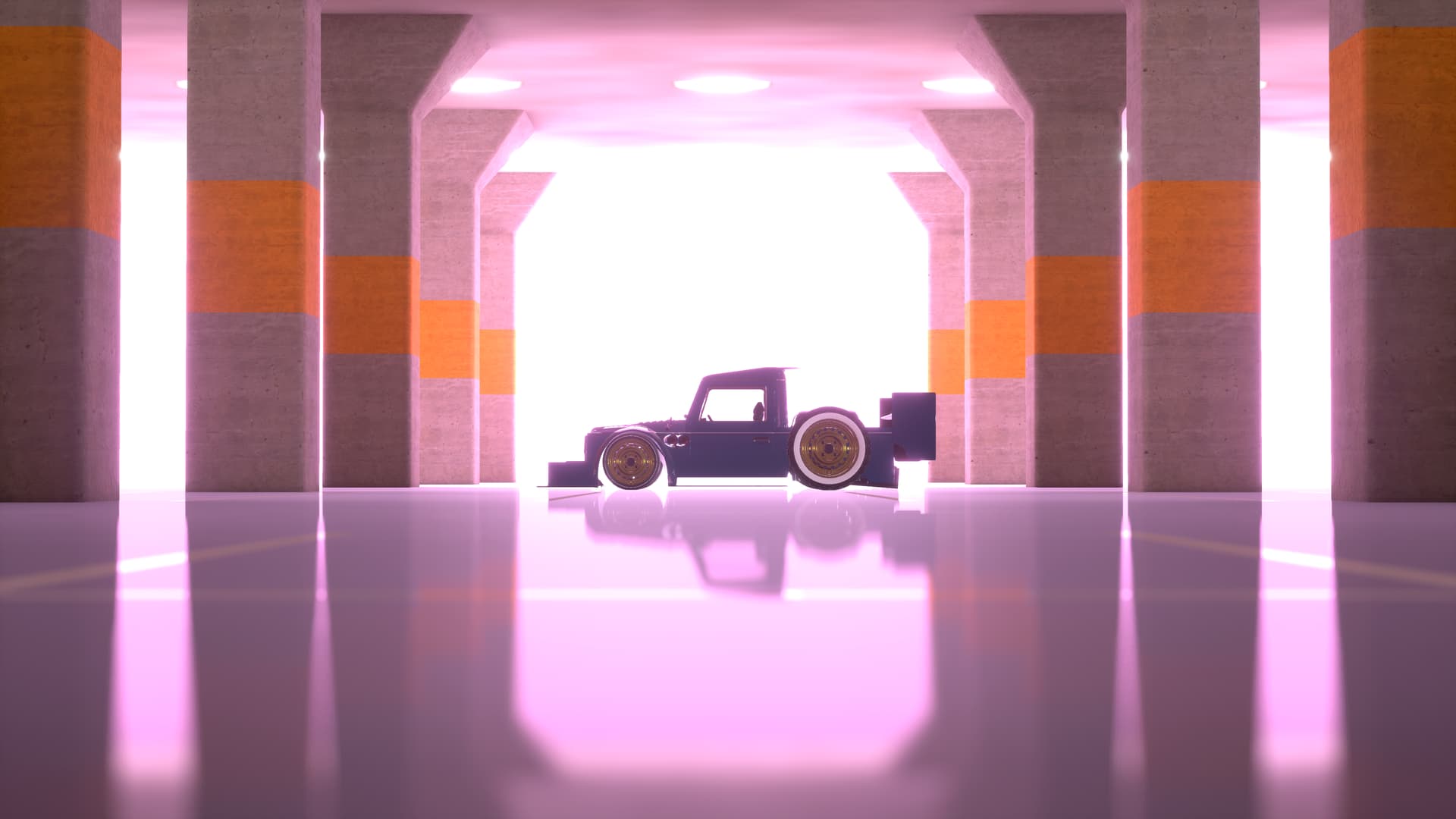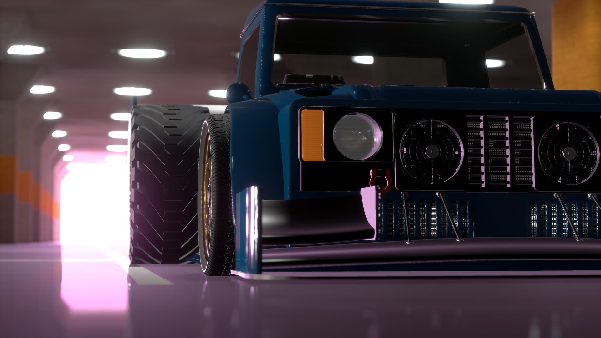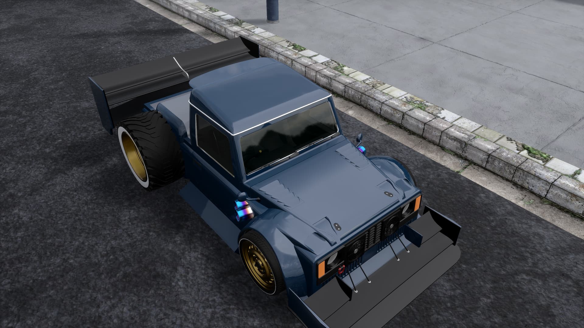 Not much of a race-truck-hatch than it is a showpiece, it still has some pretty serious mods, such as twin turbos, a rather extreme intercooler setup, triple exhausts and a sort-of-subtle widebody.