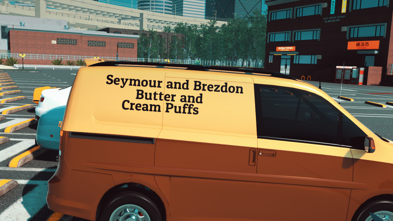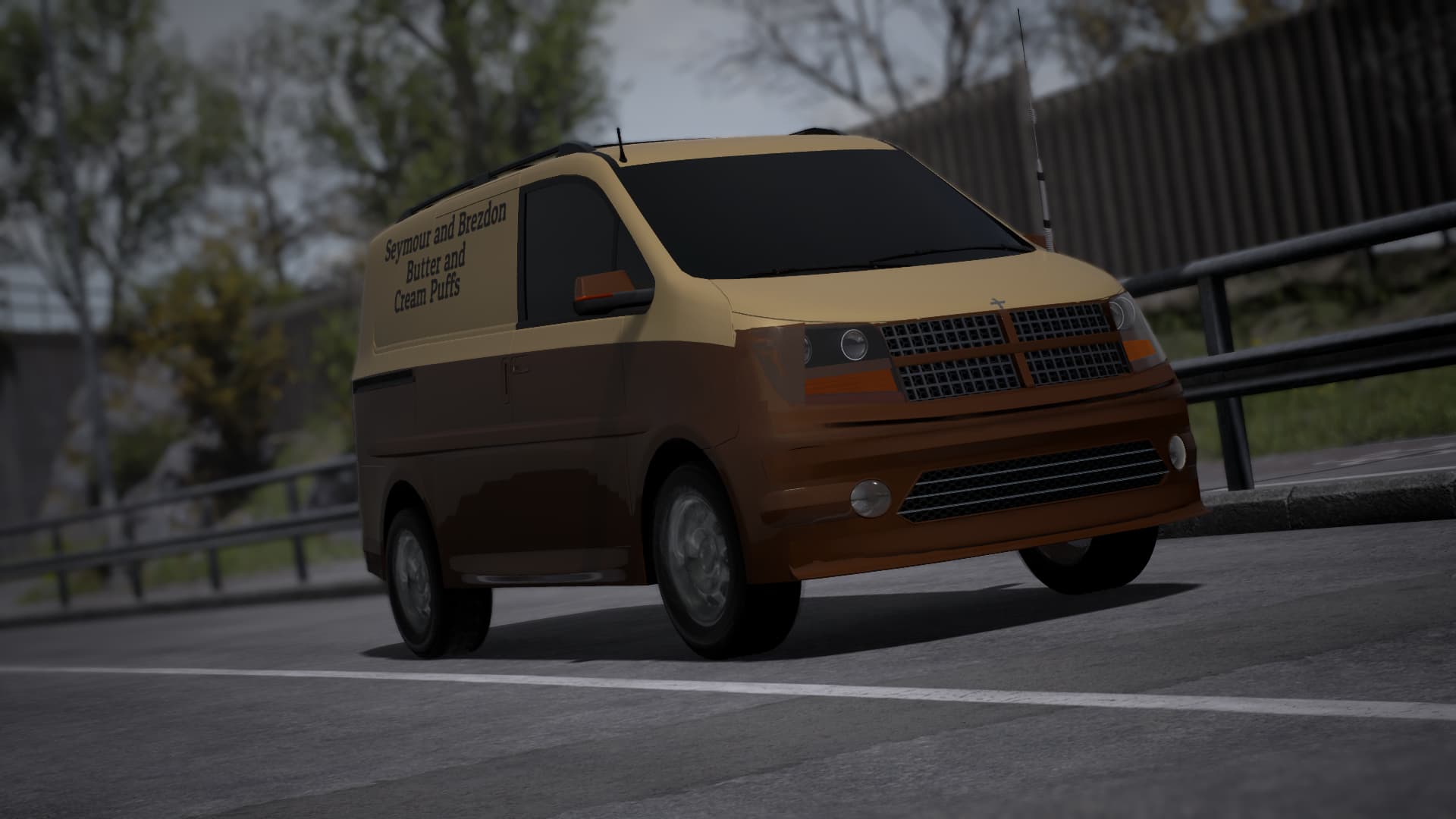 A plain-looking delivery van, for a second i thought this was actually just a normal car using the parking lot but no he was actually here for the race lol