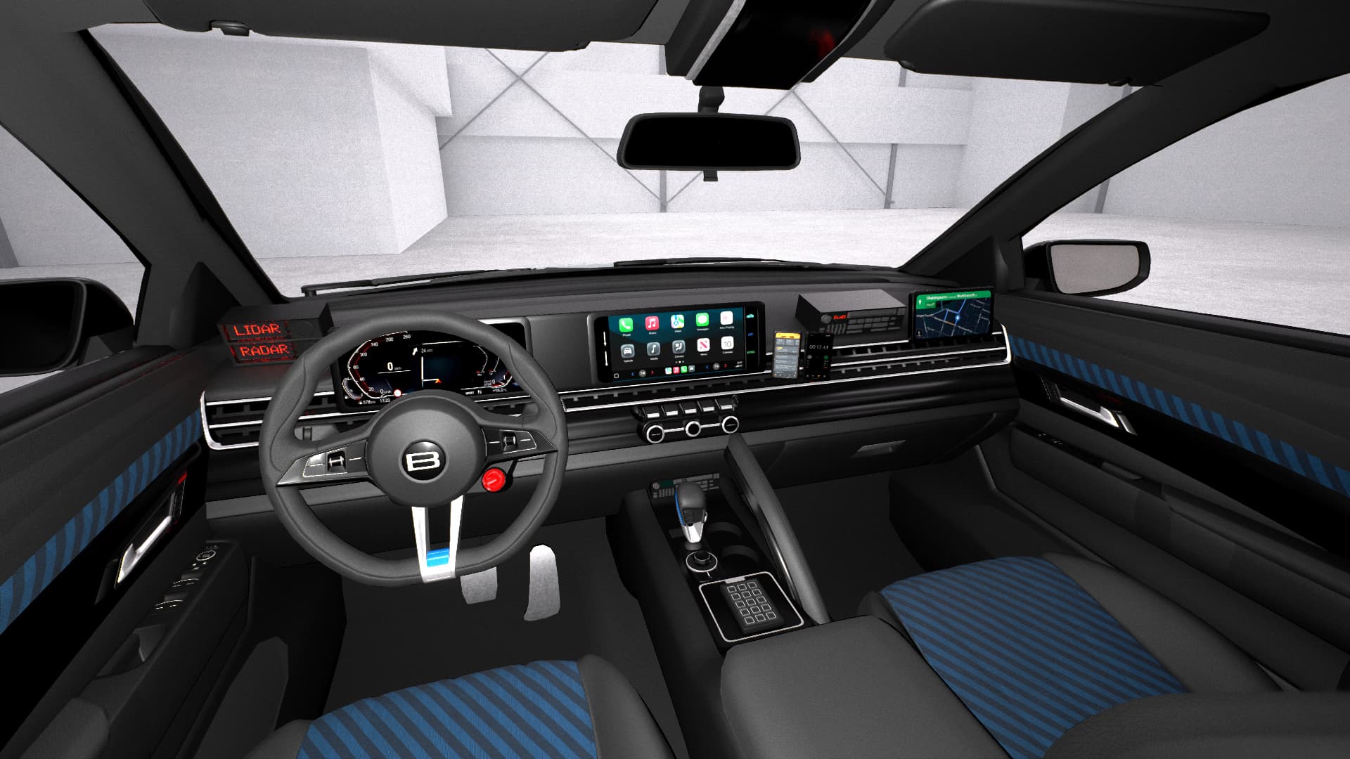 from what they said to me they found a wrecked ACZ Arya, ripped out the flat-six, slapped on a custom-tuned DCT, and then shoehorned the whole setup into this unassuming box on wheels. They lowered the suspension, put on lightweight rims, obscured the lighting for stealth, fitted an endurance-racing fuel tank, loaded it with gadgets that would make a radar tech sweat, and then—because why not—installed plush seats and a killer stereo.