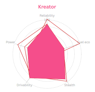 this is one of the most stealthy cars on the block and thats the biggest plus of this car, but for the rest ehhh, so again like the other car this is a race, both lasting long and finishing the quickest (hehehe) is needed for this race, your car isnt the quickest but without problem you do finish the race so ill give you that,)