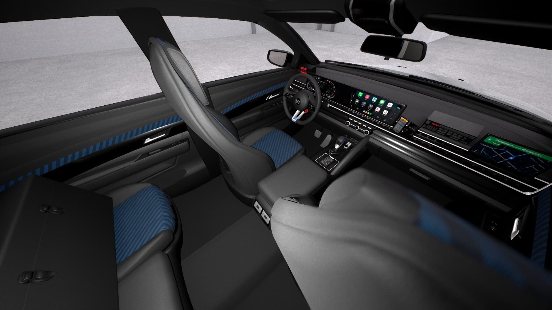And this one’s fully loaded. Premium Comfort package: adaptive suspension, plush interior materials, the kind of seats you could live in during a 30-hour sprint. Performance package: limiter bumped to 299 km/h, electronic LSDs, everything needed to turn a family hauler into a continent-slicing dart.