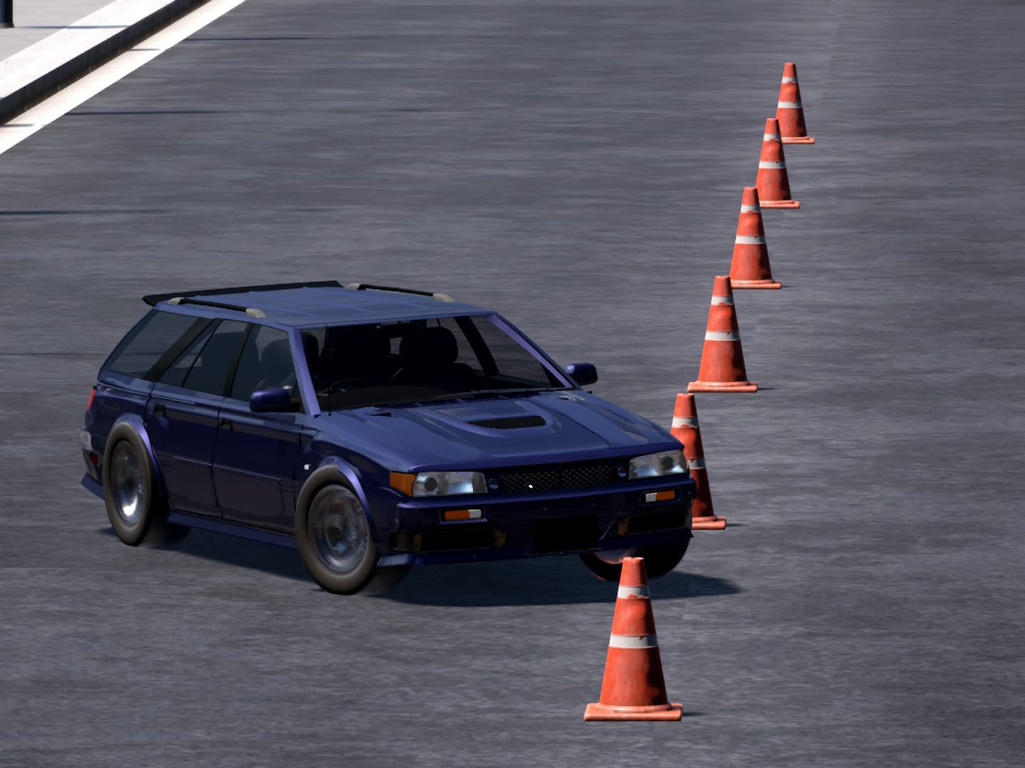 Tsuchida-san will drive these cars around the tight-knit line of cones and see just how well these cars respond to them. First, the Nanahoshi! Start!