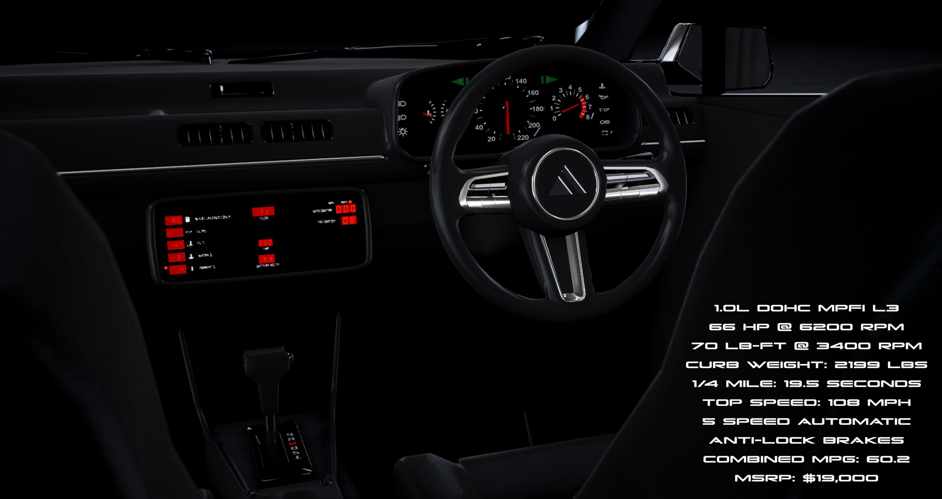 The engine has been replaced with a smaller 1.2 liter displacement to comply with tax regulation in some country. Interior is equipped with only the necessary instrument but most of exterior design is kept the same.