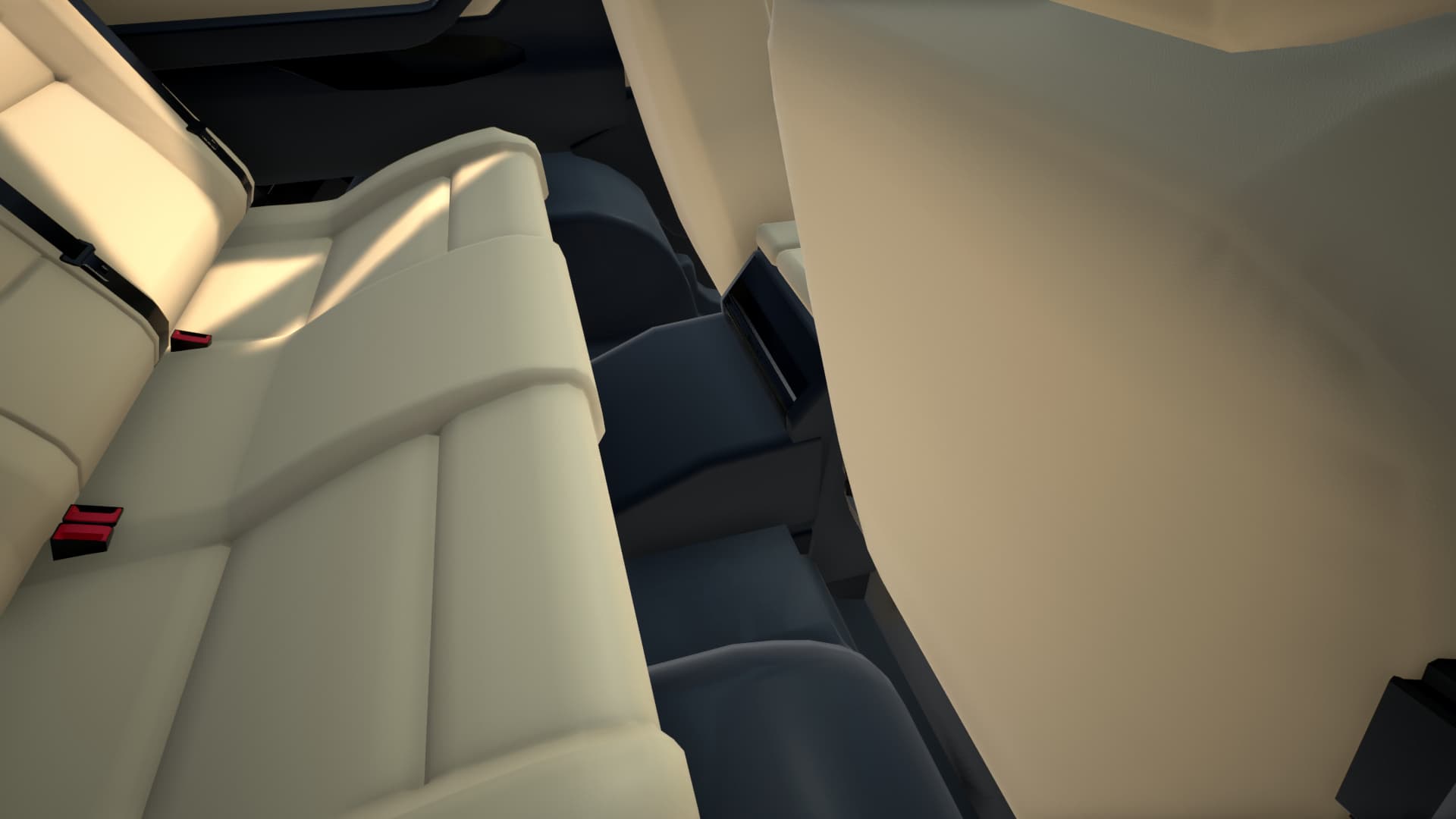 Unusually for the second row of a 7-seater like this, there is a permanent centre console in between the two captain’s chairs. This console houses a screen which controls the air conditioning, seats, and media. This is nice and luxurious, but it also means that access the the third row isn’t as good as in other cars in this segment. Up on the ceiling, there is a sunroof and a nice pair of reading lights that can be adjusted, just like in an airplane.