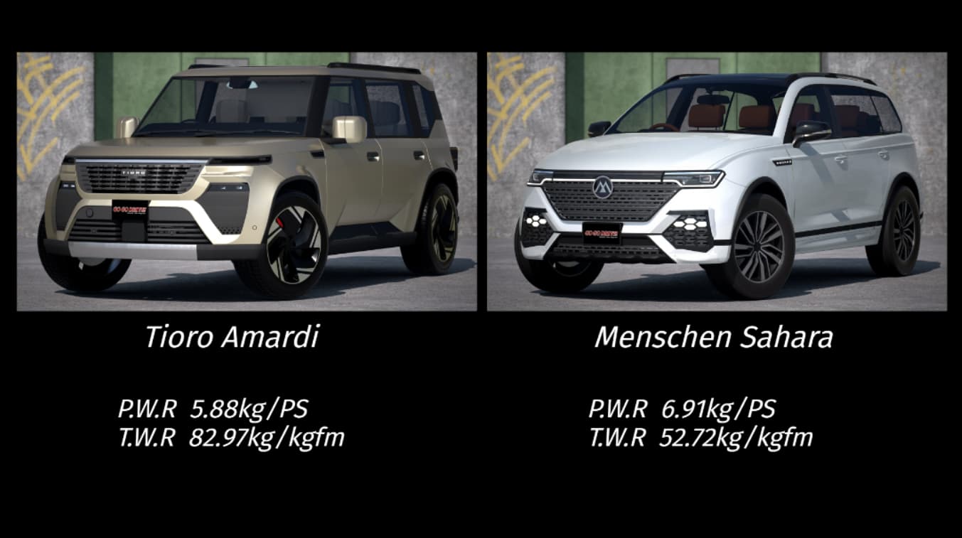 Right. Anyway, today we have brought cars that we felt best represents the luxury 7-seater class. For the SUVs, we have the Menschen Sahara and Tioro Amardi. And for the minivans, we have brought the Bellomont BM8 and the Kaizen Guide 27. We are going to evaluate these cars based on their design, everyday driving characteristics, as well as its performance at its limits. Without further ado, let’s roll the intro and get on with the show.