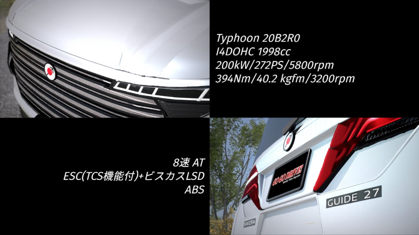 The Guide 27 is powered by a 2.0 litre turbocharged 4-cylinder producing 272PS. Unlike the previous three cars, the Guide’s suspension is equipped with more ordinary progressive springs with semi-active dampers and active swaybars.
