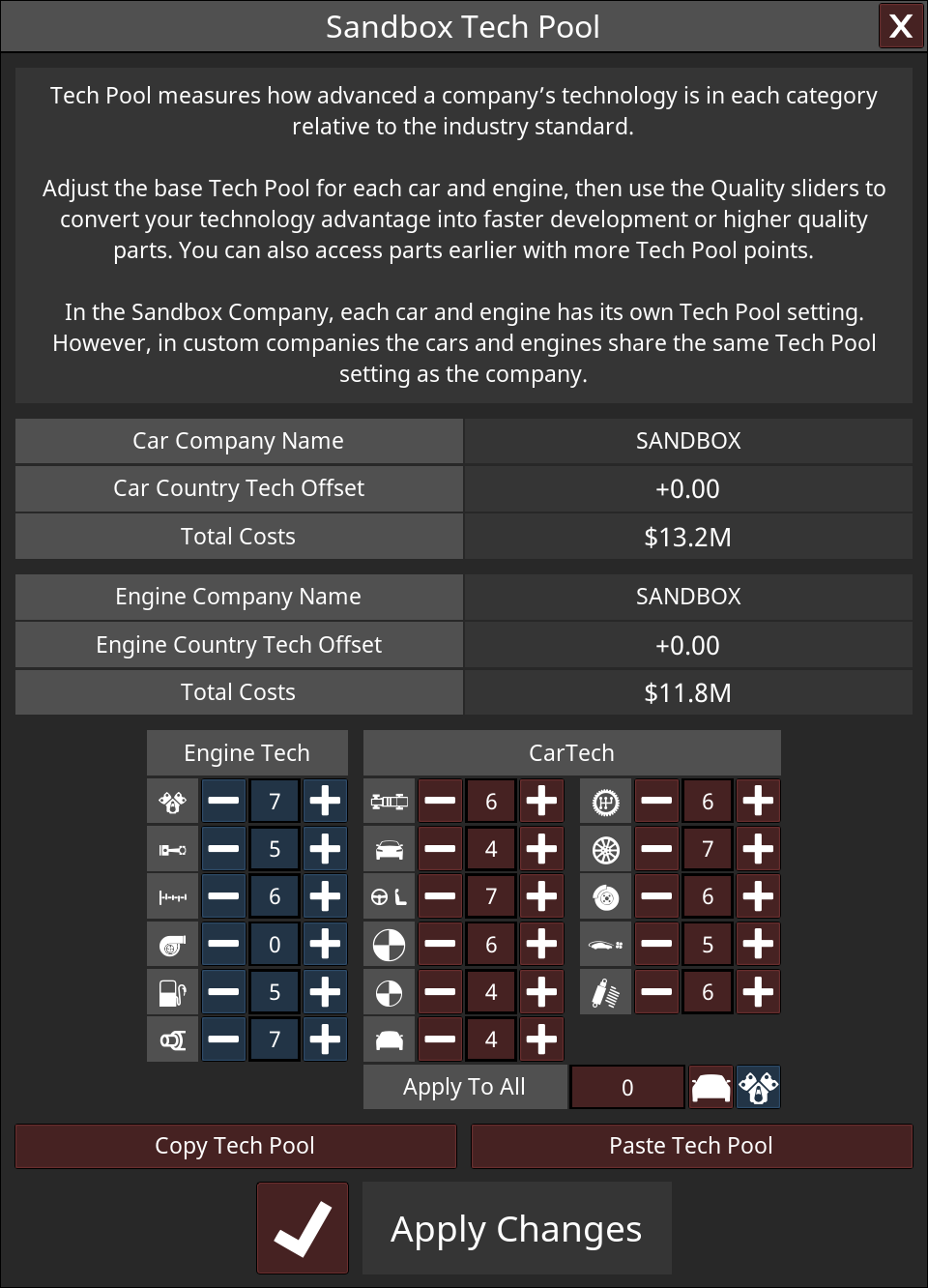 All entries are allowed $25M in techpool costs. This is the sum of total costs for car and engine, as illustrated above.