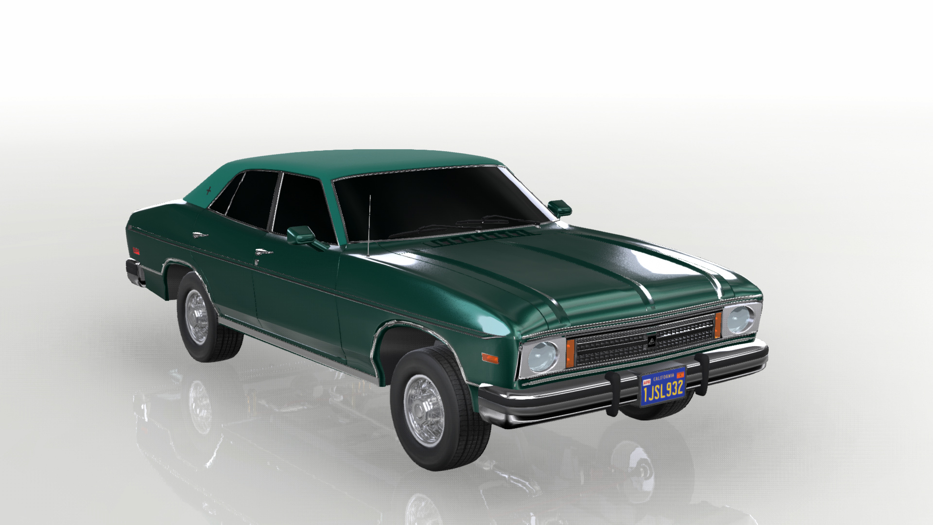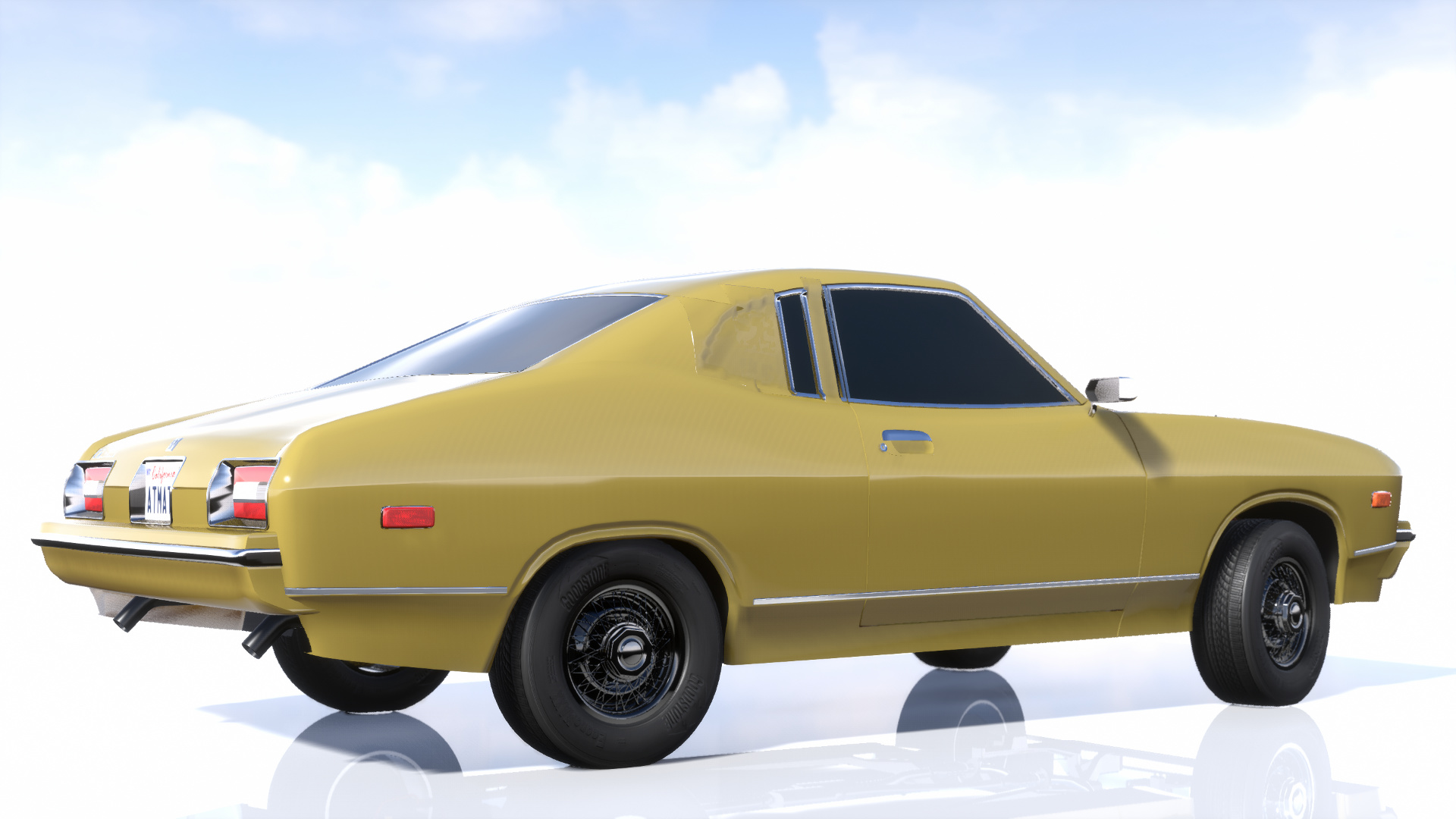 So the name and concept are most inspired by the Ford Maverick LDO, however there are also Nova LN and Valiant Brougham cues thrown in. Dimensionally it is a subcompact, most directly comparable to a Plymouth Cricket. The back seat is ahead of the rear wheels unlike in a Vega or Pinto.