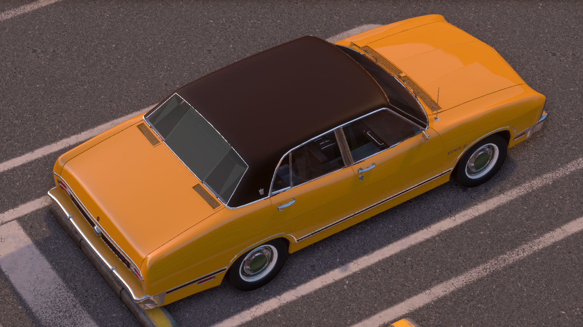 The 1974 Earl Eagle POS: Big car comfort and style, small car price and usability. Designer vinyl bucket seats, console shift 3 speed automatic transmission, and standard 100 horsepower six cylinder engine.