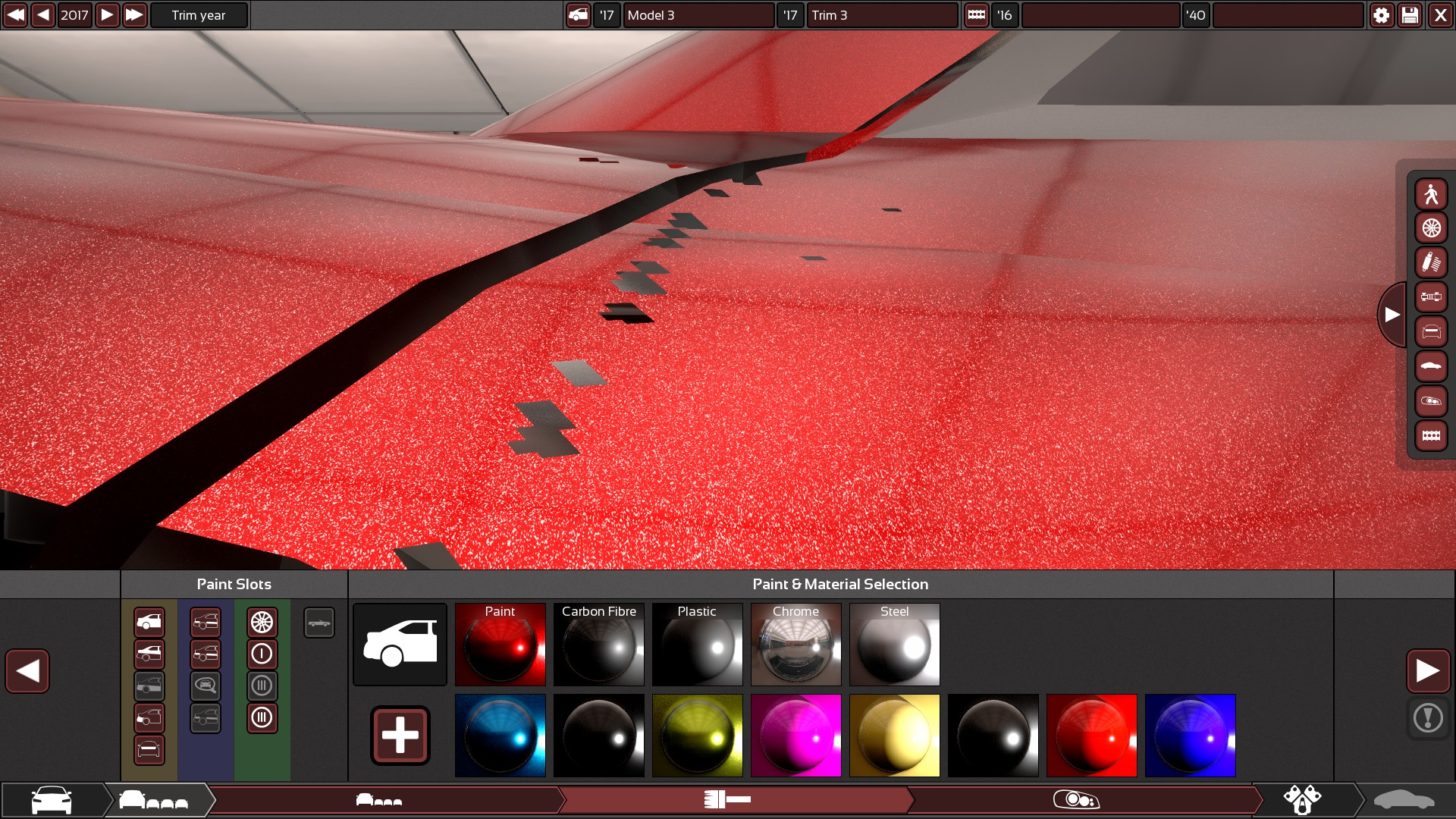 I have a suggestion, although this may not be a high priority: secondary paint slot for 40sRoadsterLarge (side bottom), 40sMPVLarge_Passenger (roof), 40sSedan (roof), 40sSedan02 (roof), 50sMaffcSaloon (roof, all sizes), 60sRoadster (side bottom), 60sSedan02 (roof, both Cadillac and Holden based bodies, except convertible) and 80sBoxyCompact_Shell (side bottom and full front bumper paint).