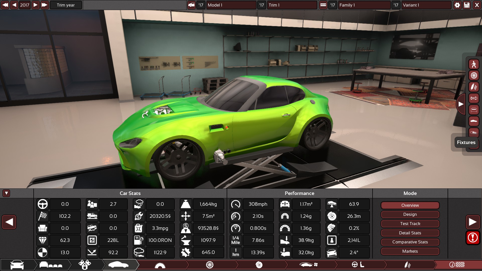 We haven’t made more fixture material variations because they’re going to be dynamically textured. The basic plan is to give fixtures paint slots, much like bodies. The slots will take car paint primary, secondary, carbon fiber, chrome etc. The player can then assign materials to those slots as they wish. Grill materials will also be able to be cycled. I’ll probably implement this for the next big update as we start to focus more on the car designer.