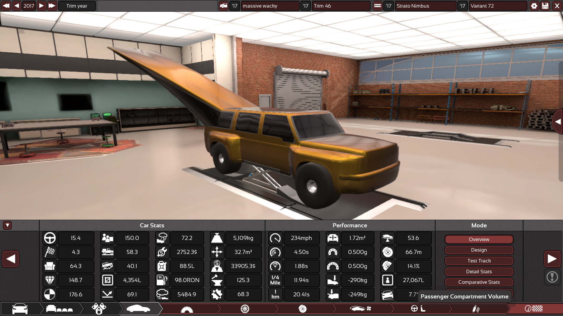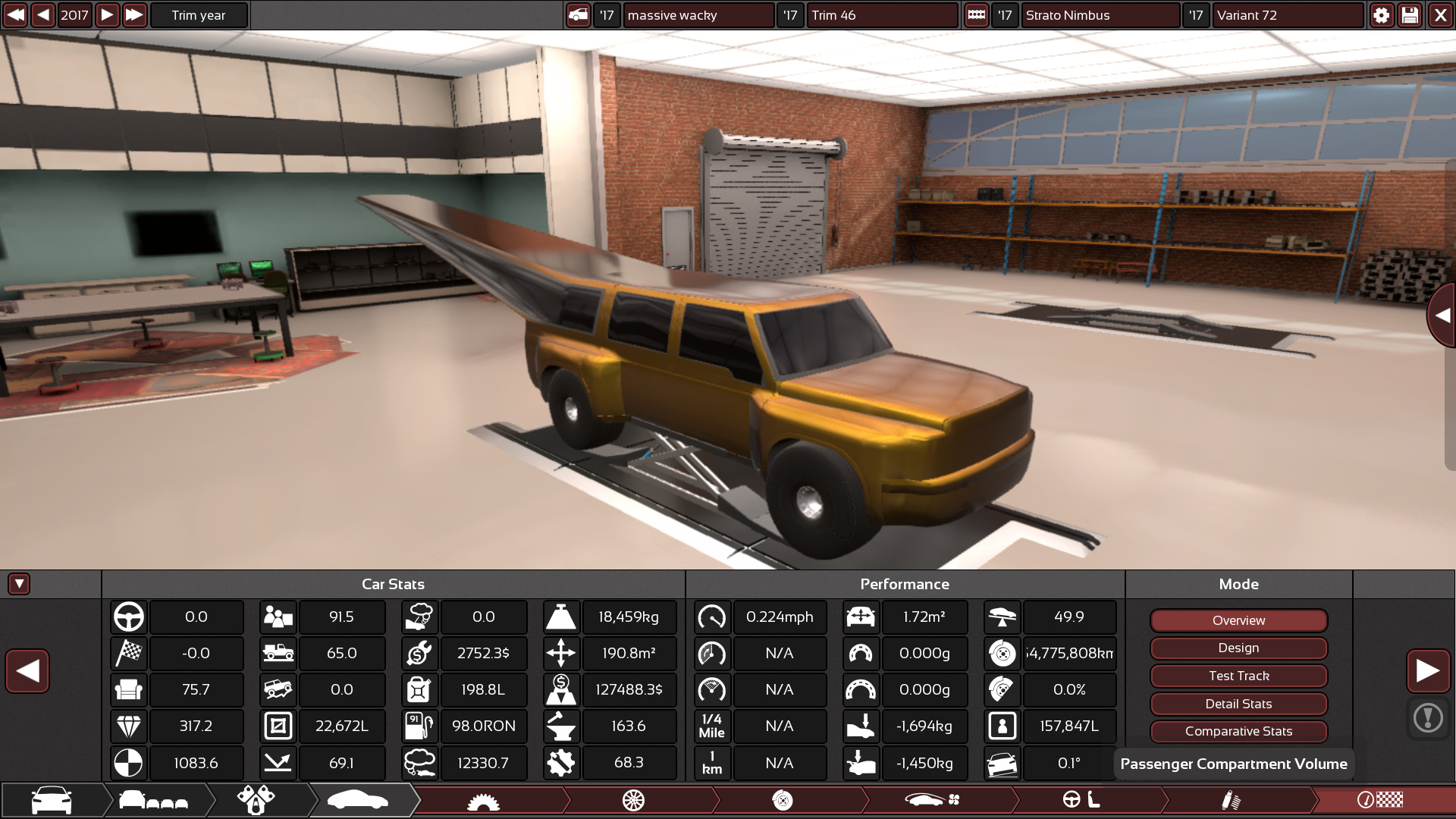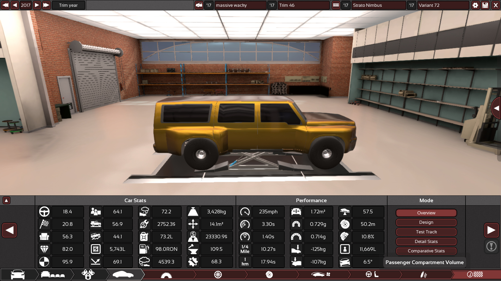 Does the car have an unrealistically large amount of passenger volume? I have noticed suspiciously large passenger volumes adding mass to several of my vehicles.
