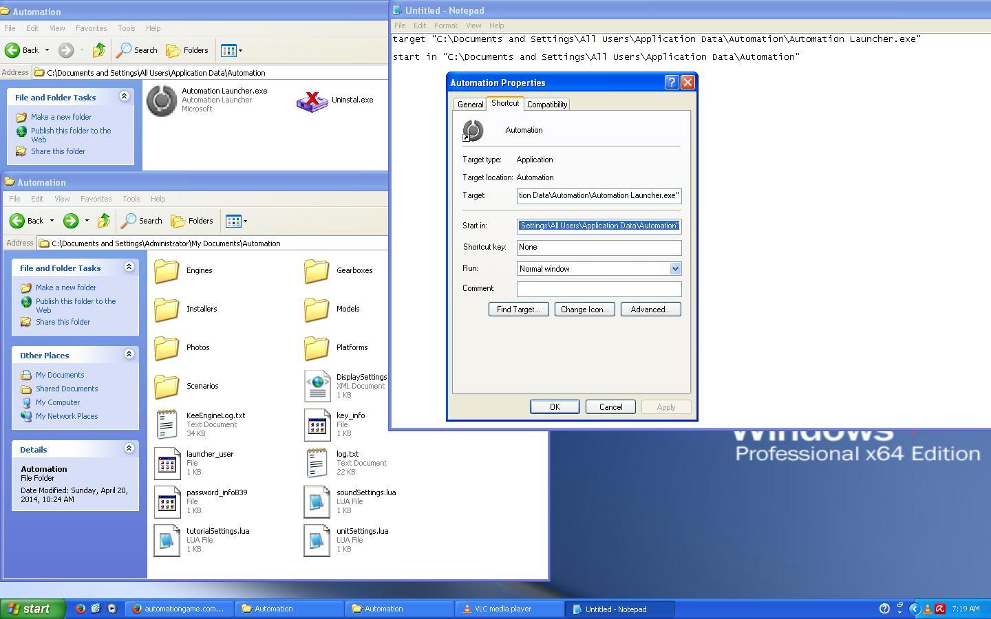 Can you right click on the Automation shortcut go to properties, click on Open File location and take a screen shot of that folder please.