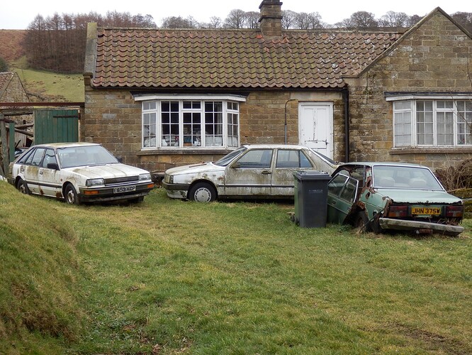 So basically, I know of this house where the sole person living in it is some kind of hoarder or recluse (apparently his wife died or something and so he decided to live his life away from everybody else). The house and everything on the plot of land is broken or decaying in some way or another, and the only thing he really keeps tidy is his grass. But anyway, he owns 3 cars. These 3 cars are an Austin Maestro (1994 M Reg), a B3 Passat (age unknown, wish I could find out) and an unknown car that’s under a cover further in the back.