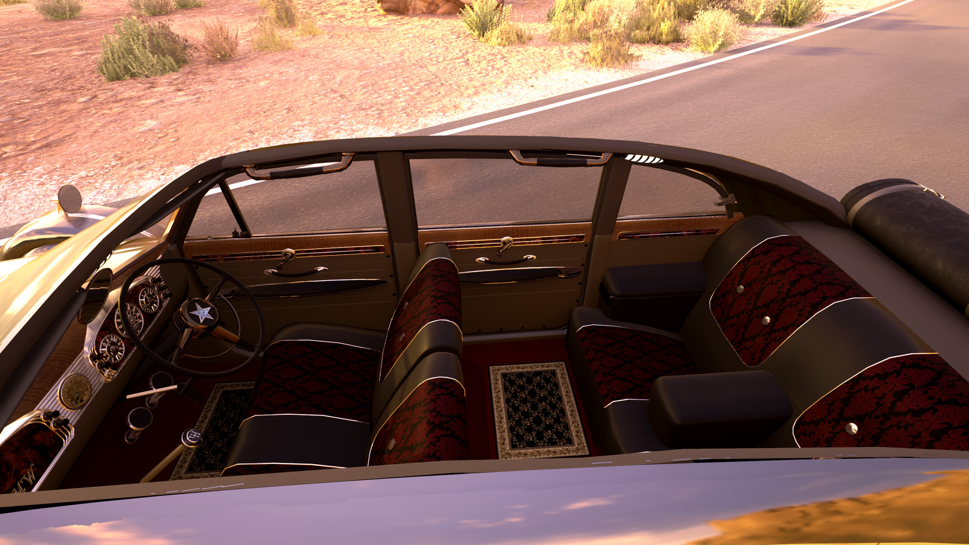 With the awkward tension eased up, they set off. The intricate clock in the center of the cockpit displayed the time as being half an hour past seven. The quietness and stillness of the interior felt otherworldly to Lily, a smashing contrast to their loud, proud, bright red American coupe back home across the pond.